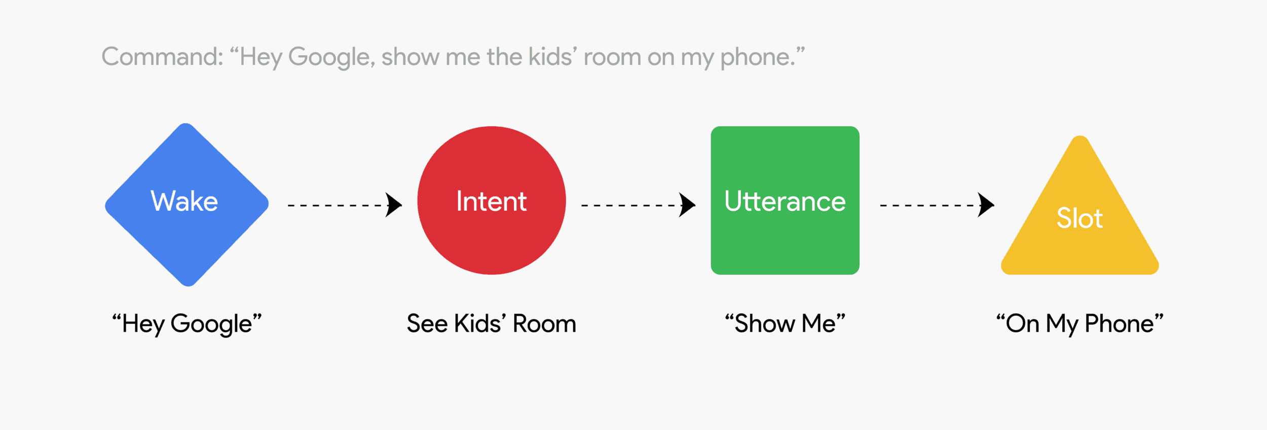 To design meaningful interactions, we had to translate narrative flow into the basic building blocks of voice design: wake words, intents, utterances, and slots. Together, these elements shaped how users engaged with the system and how the system responded in turn.