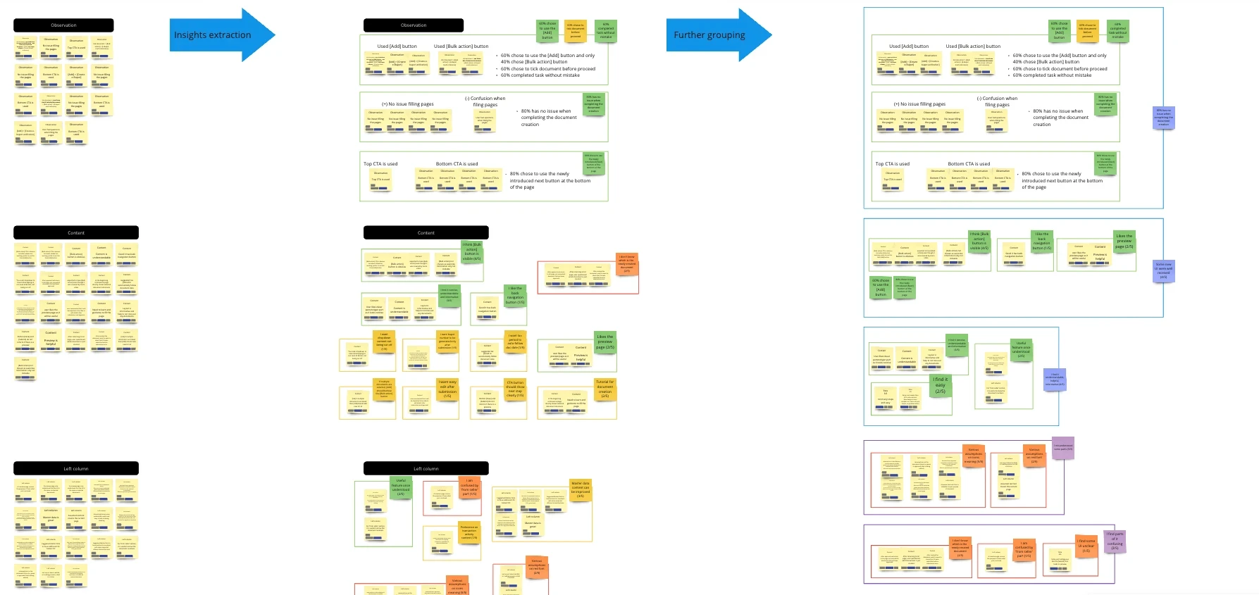 For this phase, I delegated the user interviews to our Bahasa-speaking UX Researcher, training her on body language cues, neutral prompting, and maintaining a fair testing environment. We learned early on that having two interviewers present made participants less responsive, so the researcher led the sessions independently while recordings were reviewed later for insights. Across ten interviews (five sellers and five buyers), we uncovered consistent patterns that were mapped into an affinity board in real time. The synthesized findings were then presented in a visual deck for stakeholders and circulated company-wide, informing several upcoming product decisions for the Transactions team.