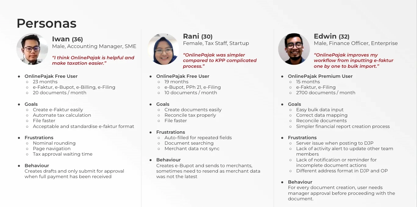 The goal was clear: understand why users were dropping off and find a way to bring them back. But as a Singaporean designing for Indonesian users, the real challenge lay in understanding their habits and mindset around digital tax processes, that is, a space that’s both culturally and contextually nuanced.