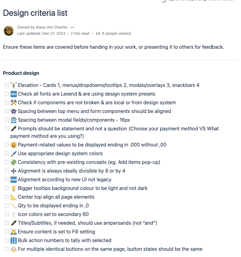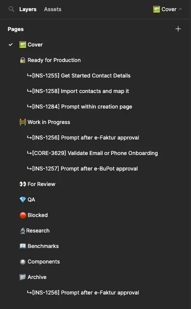Beyond that, I focused on improving our internal design operations. Together with the VP of Design, I introduced a standardized Figma template that displayed the status of each design for smoother handovers between teams. I also created a design-criteria channel to help designers ensure their files met a consistent level of quality before handoff, and a design-team-update channel to track progress, identify blockers, and keep other departments informed of design status.