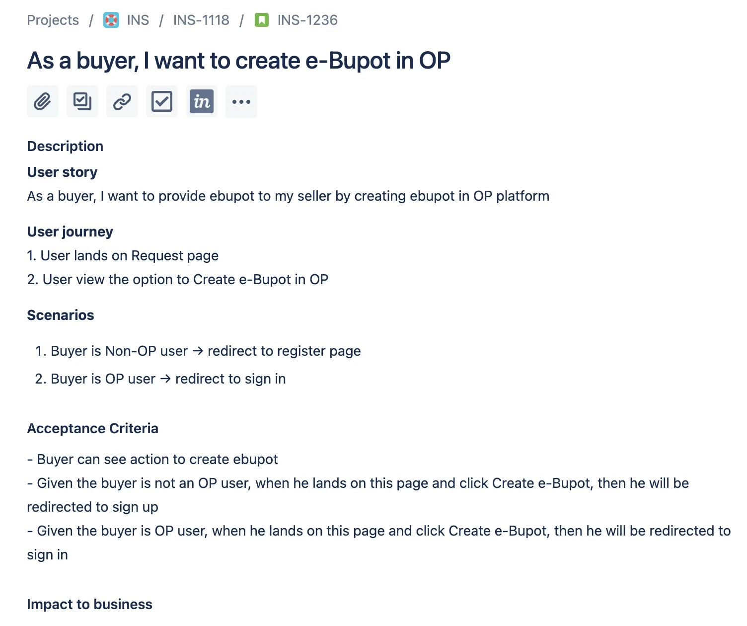 With the Product Owners now equipped with visual guides, they began ramping up user story production to cover edge cases and secondary flows. However, it quickly became clear that the quality and structure of stories varied significantly from one PO to another.