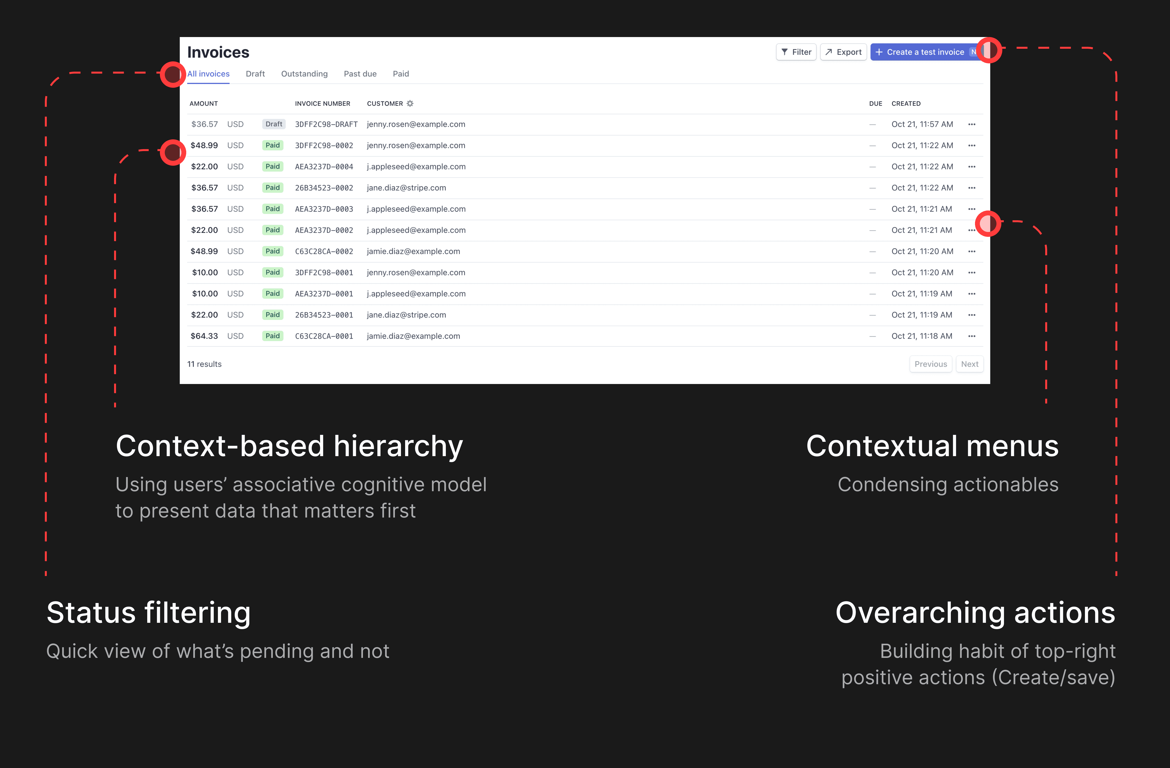 Beautiful work is often inspired by what already exists. To ground our thinking, we created a shared Figma board to map out how competitors with invoice management as their core offering approached similar challenges. We studied their processes critically, noting what worked well and where there were opportunities to improve. For benchmarking, we focused primarily on Stripe and Wave, both strong references in usability and visual clarity for financial workflows.