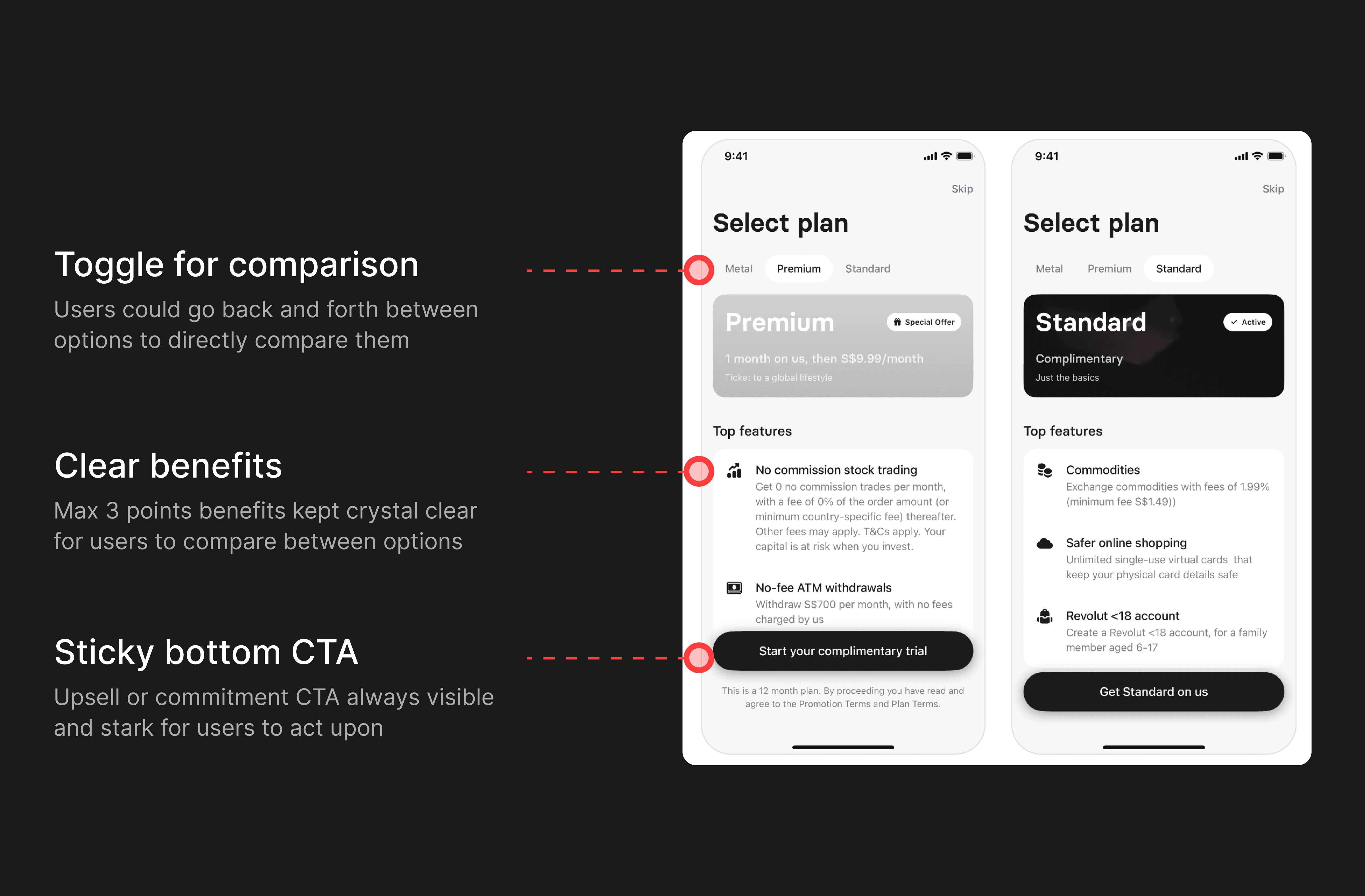 The redesigned Upsell flow resulted in an additional earning of SGD $863K/year since 2023. From our mass ratings feature, user satisfaction for the upsell (or upgrade - as deemed by users) increased by 69%.