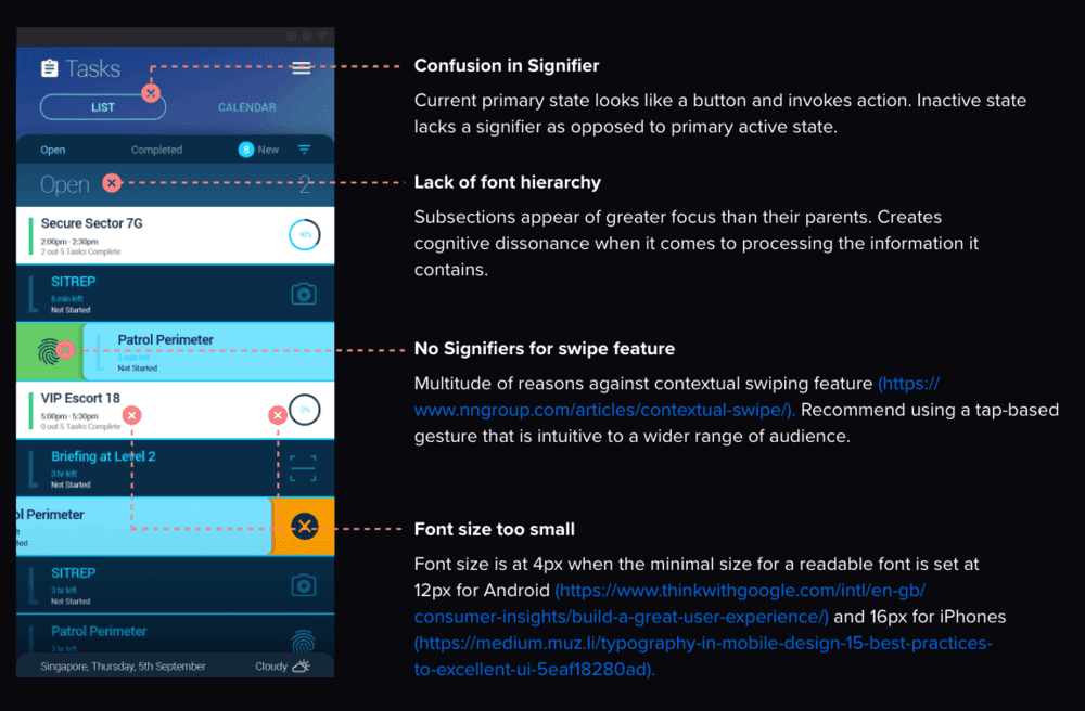 Within the actual task completion process, the biggest issue lay behind legibility and contextual actions.