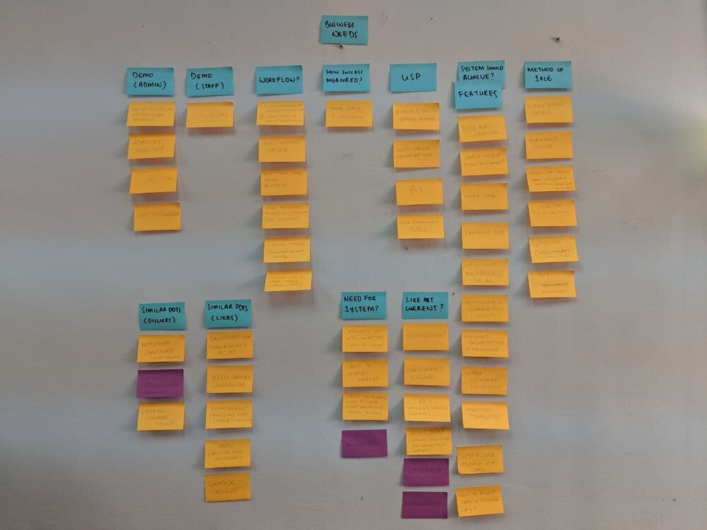 Traditional sticky note in-person affinity grouping that ended up falling everywhere!