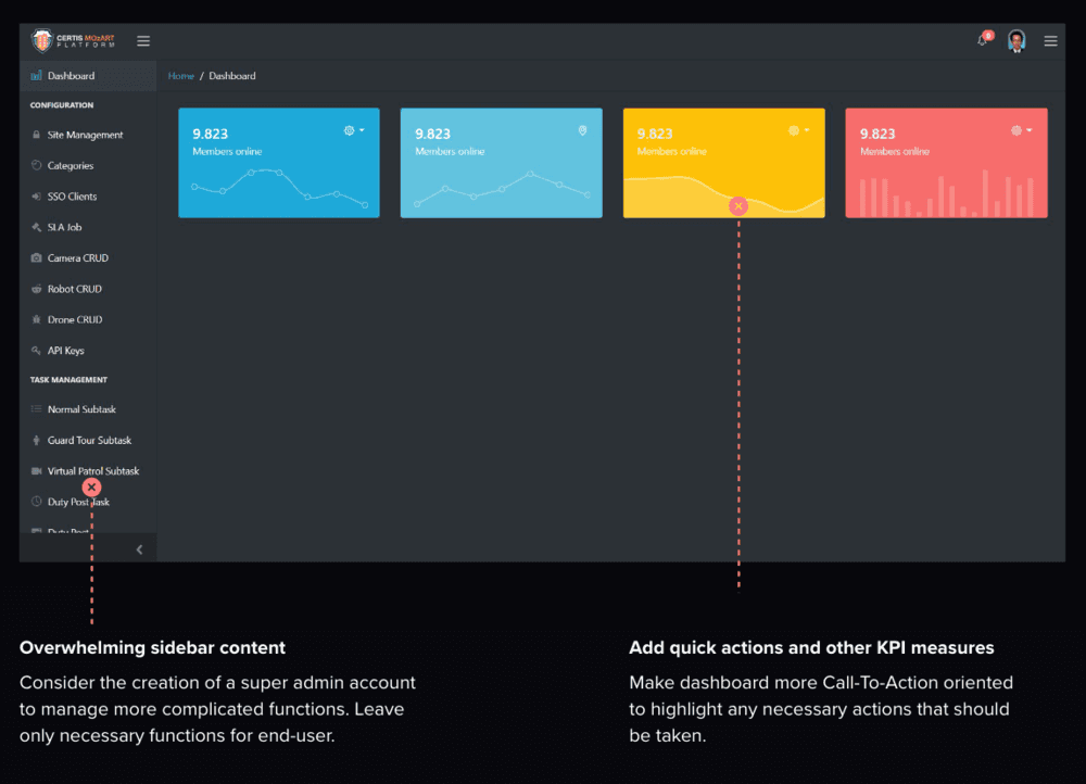 The admin dashboard lacked actionable content on first glance and had them hidden behind a scroll.